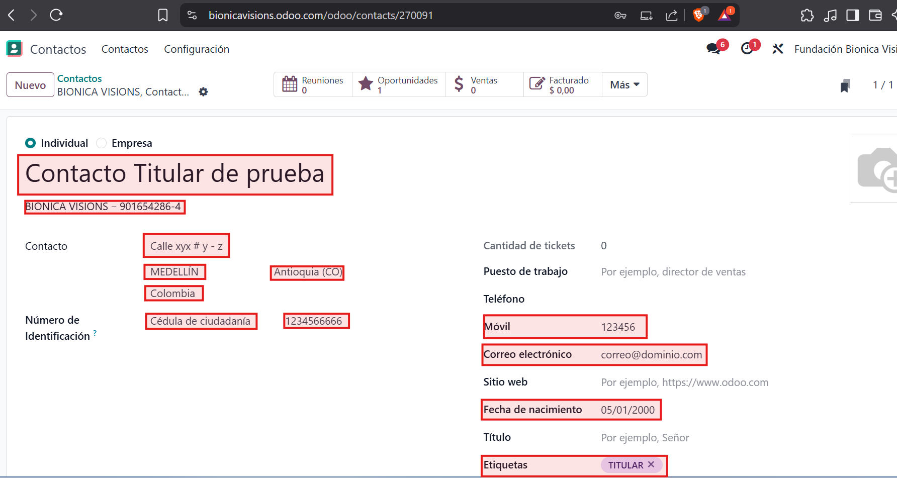 - Al ingresar al formulario del contacto verificar que los datos que tiene son los correctos de lo contrario actualizarlos.